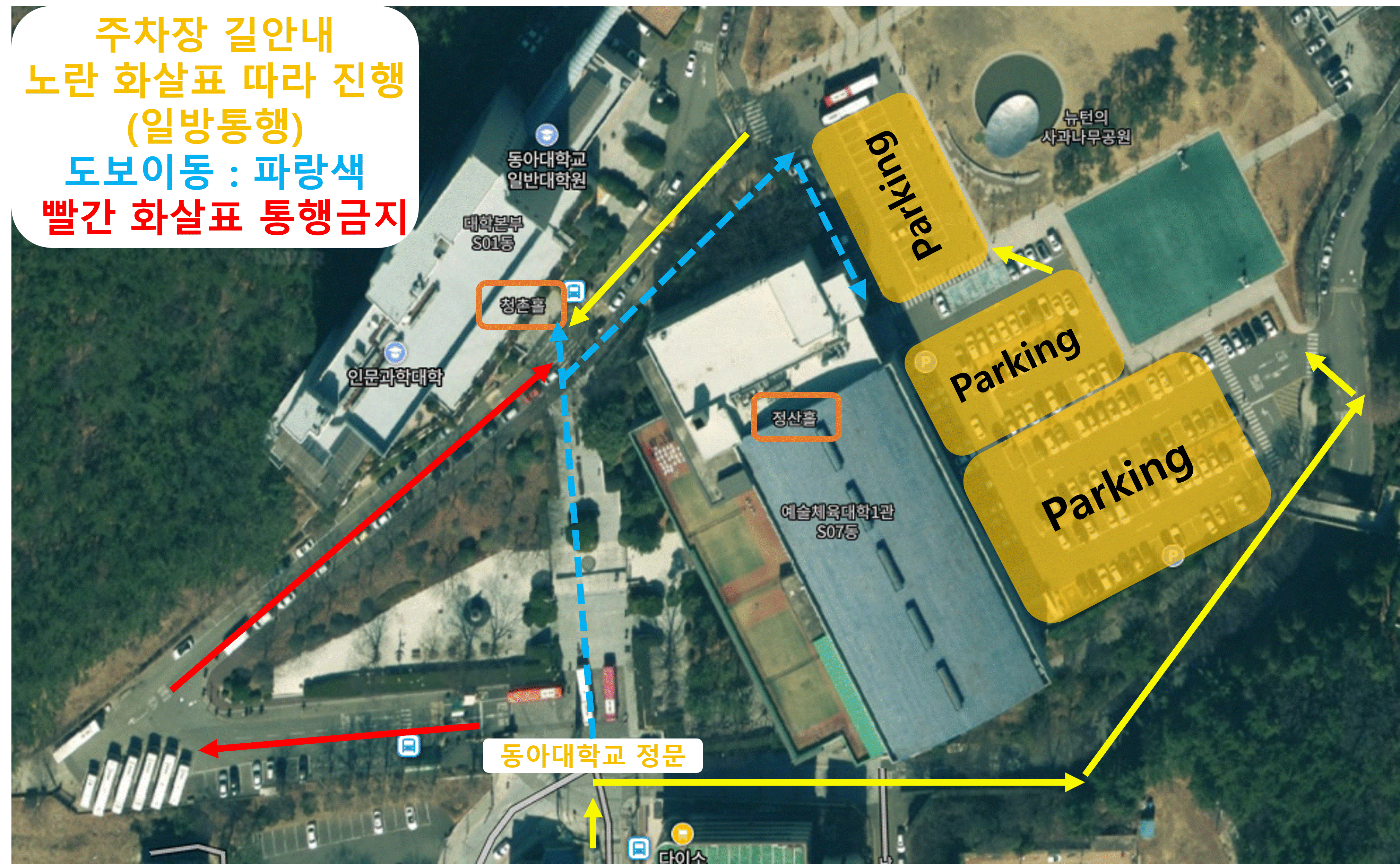 - 학술대회에 차량을 이용하시는 분은 정문에서 우회전 후, 예술체육대학1관 S07동 옆에 주차하신 뒤 도보로 학술대회장까지 이동해주시기 바랍니다.