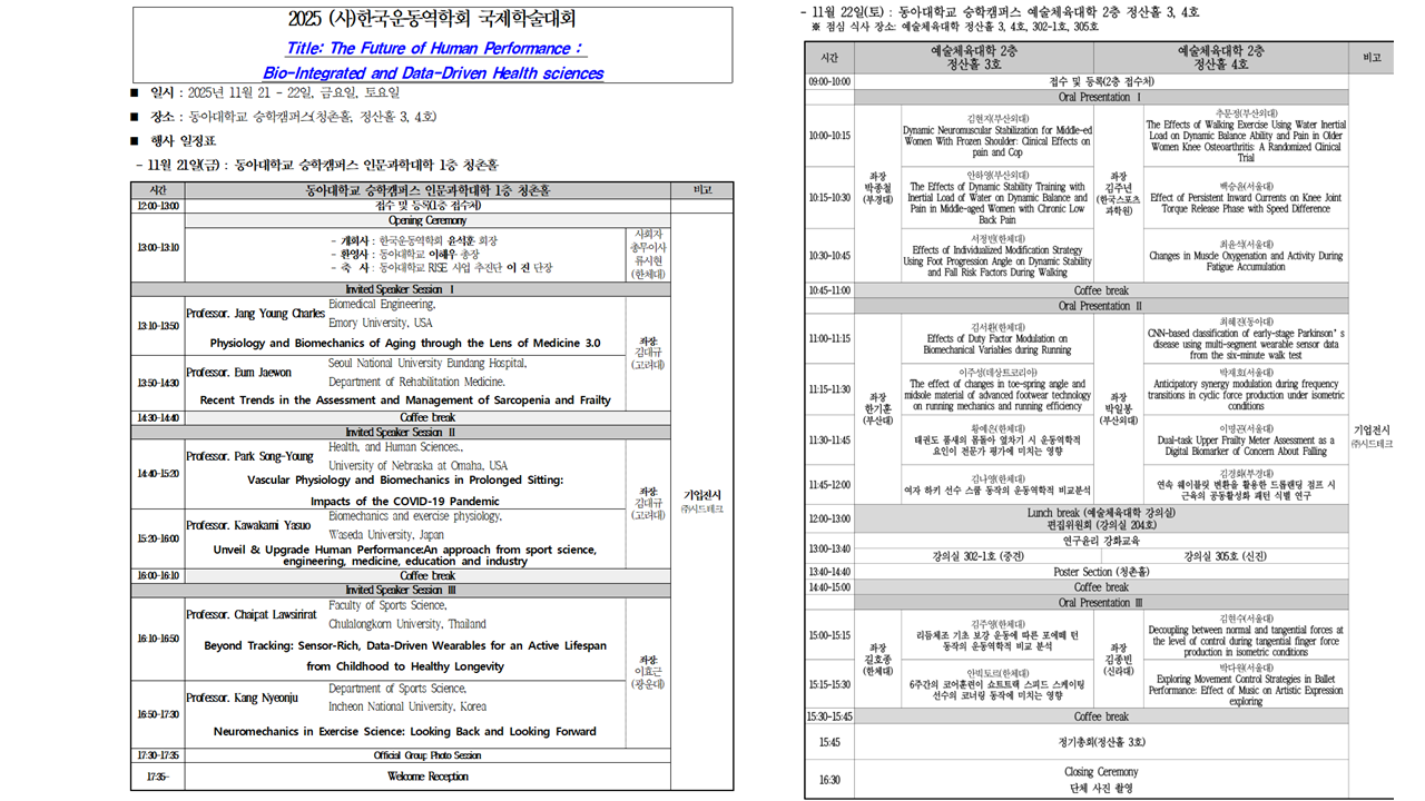- 행사명: 2025년 (사)한국운동역학회 국제 학술대회